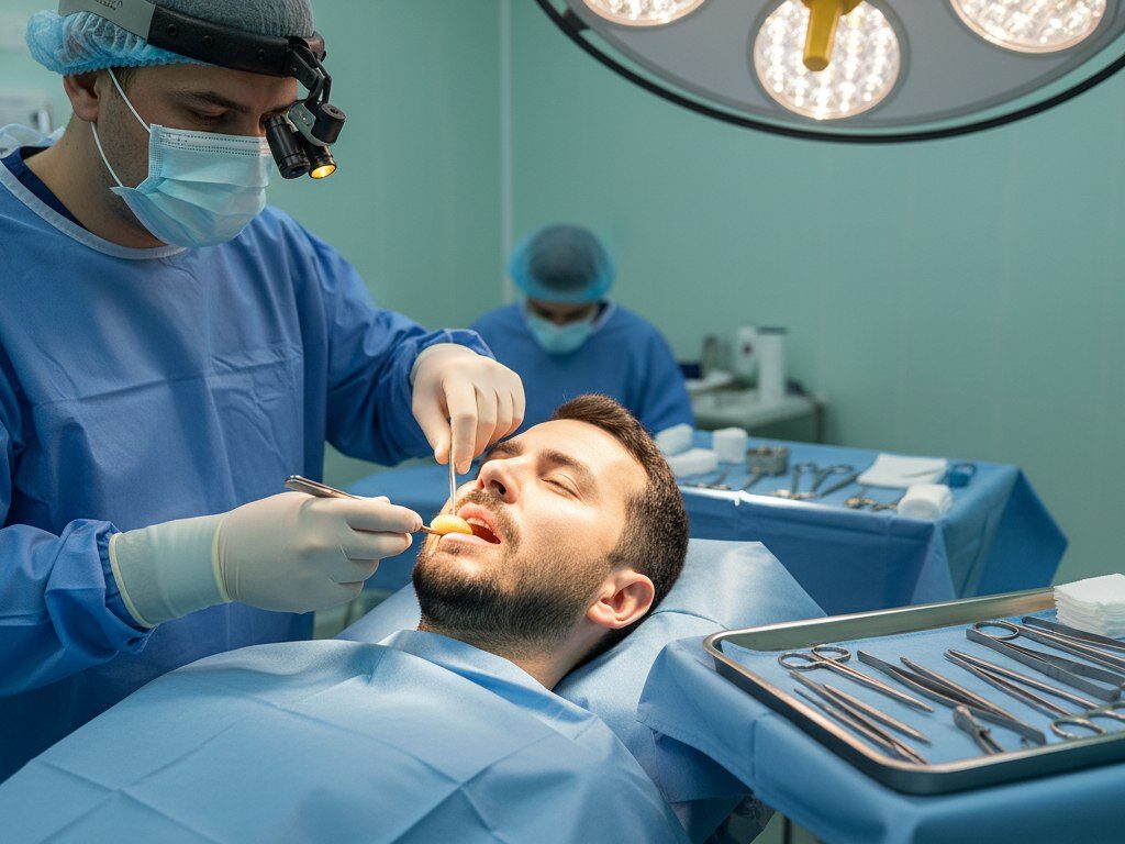 La cirugía se realiza generalmente con anestesia local (con o sin sedación), y tiene una duración aproximada de 30 a 60 minutos. Las incisiones se realizan por dentro de la boca, por lo que no quedan cicatrices visibles externas.